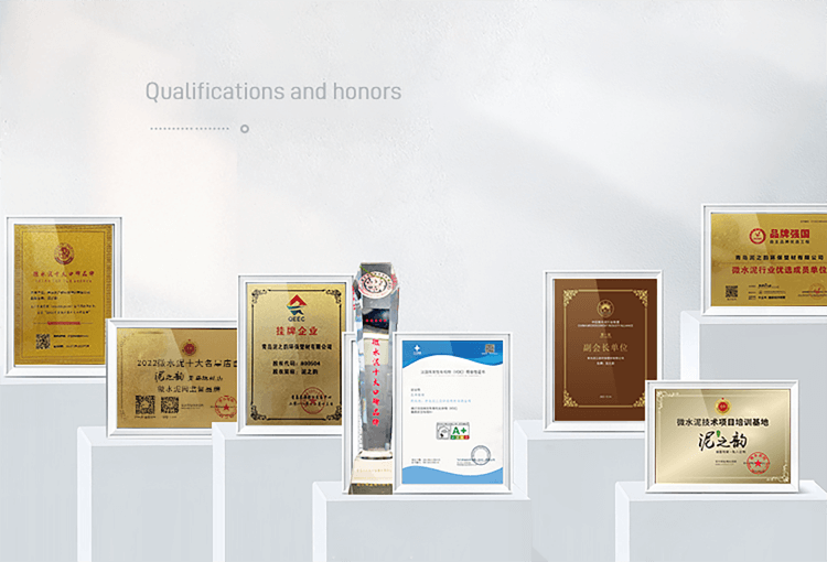 2022年,成為微水泥團體標準起草單位;榮獲2022年微水泥十大口碑品牌;榮獲2022年微水泥十大品牌;榮獲品牌強國微水泥行業(yè)優(yōu)選成員單位;